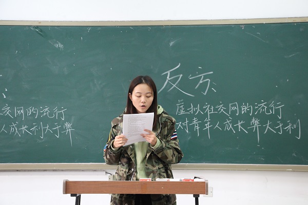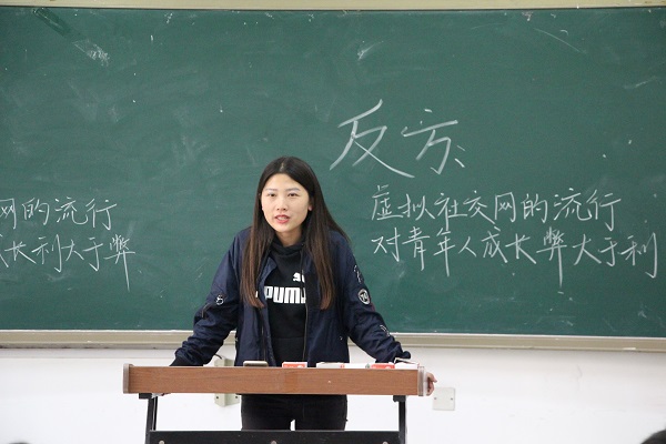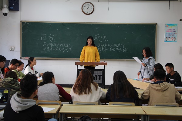 10月26日中午12点半,在博学四号楼C107教室,威尼斯官网进行新生辩论赛决赛。威尼斯官网17级辅导员李月和16级兼职辅导员杨琪琪以及往届的优秀辩手担任评委。环境三班与环境五班辩论队赛以“社交网络对青少年的身心健康的利弊”为辩题争夺冠军。