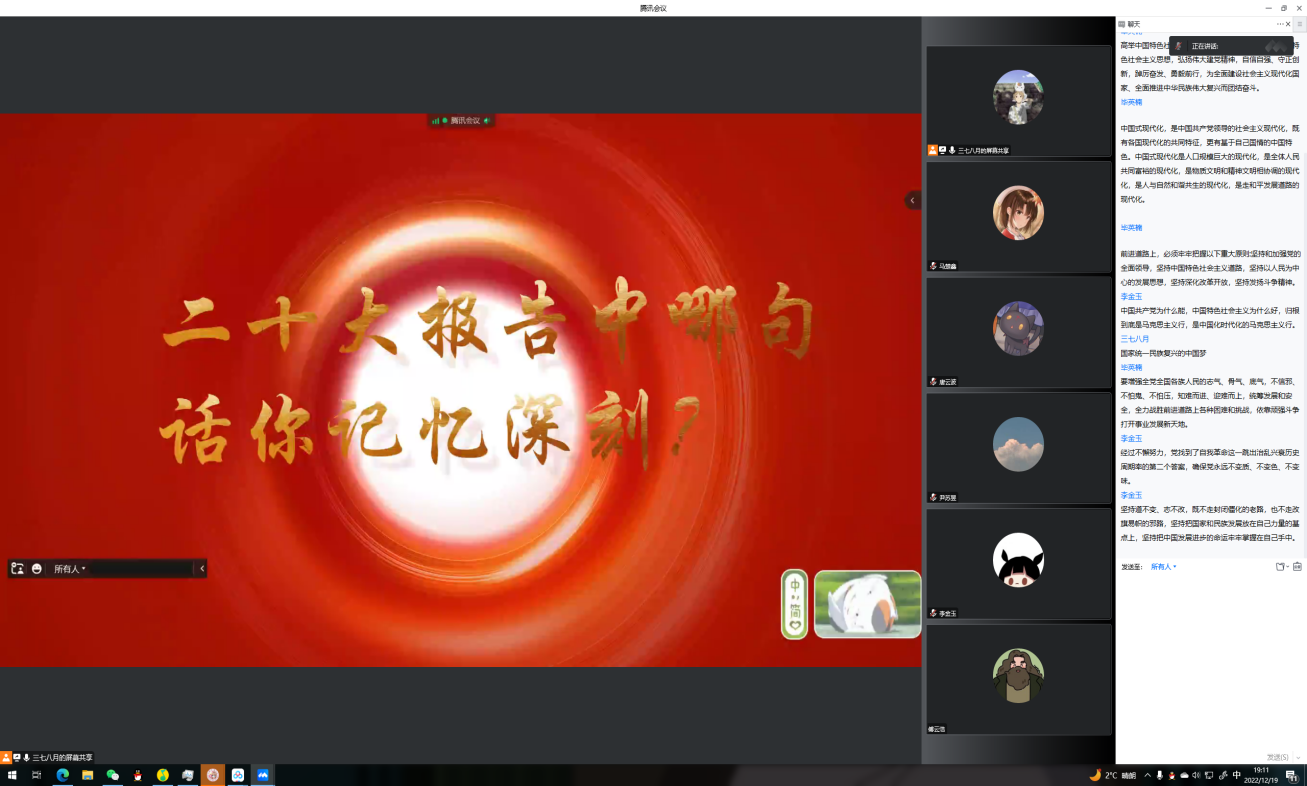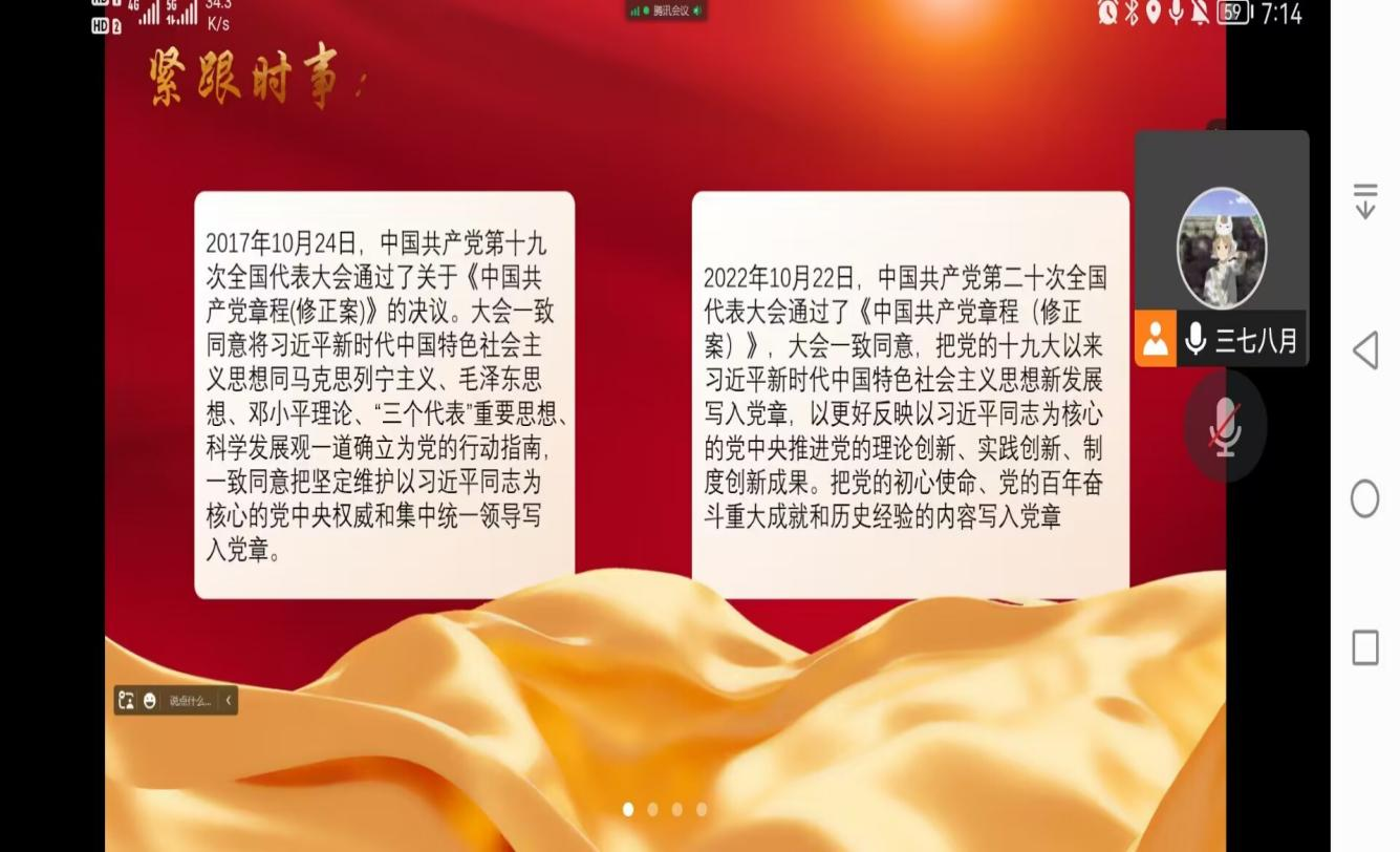 为深入学习和贯彻党的二十大精神,提高同学们的思想觉悟,教育引导同学们坚定不移听党话、跟党走,12月19日晚上7点,威尼斯官网遥感22-2班团支部于线上举办“学习二十大,永远跟党走,奋进新征程”主题团日活动。