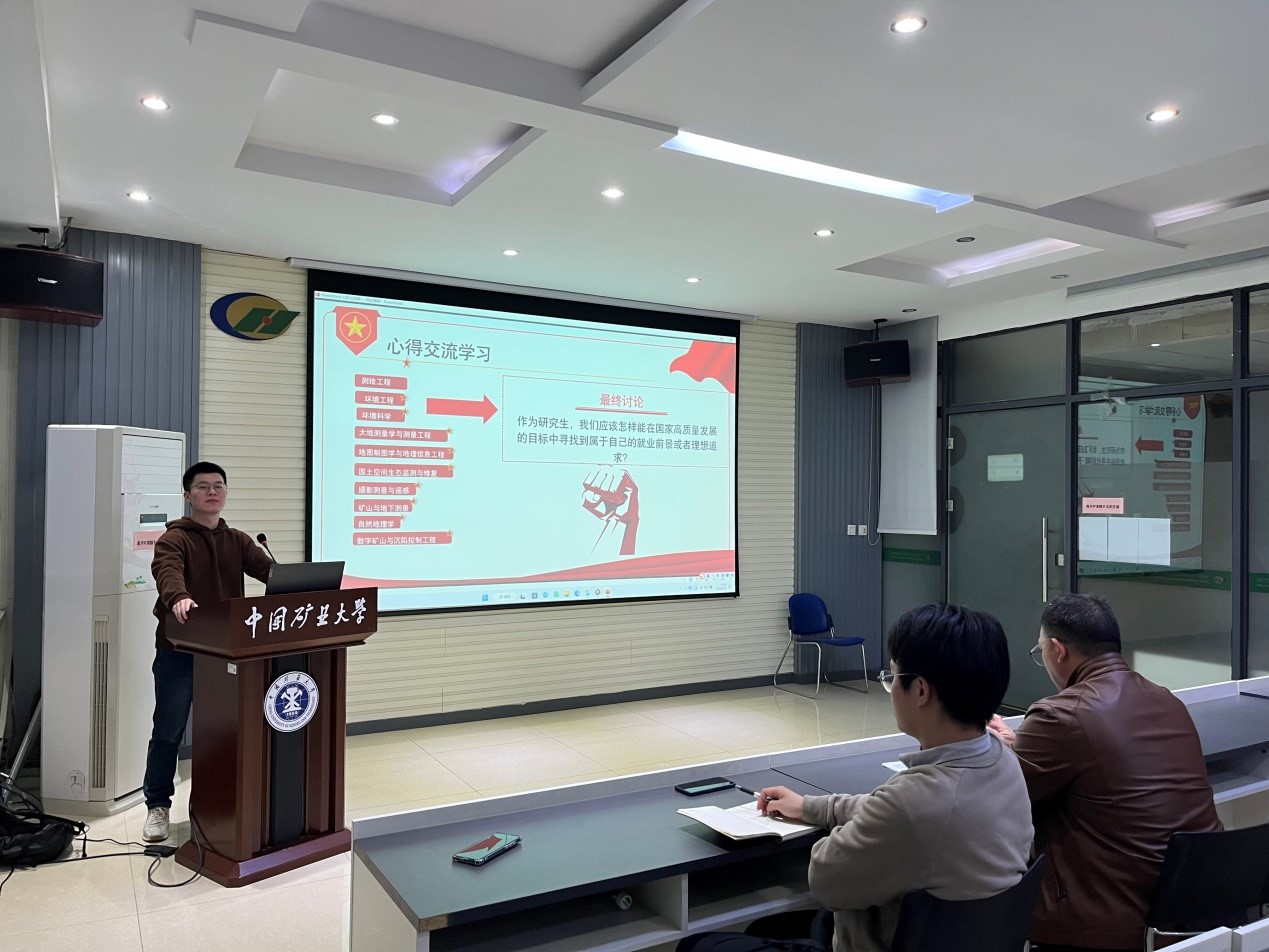 活动最后,环测学院研究生辅导员杨政军老师做总结发言,杨老师指出,我们要真正把学习“两会”精神扎根在思想上、落实在行动上,每一位党员同志要自觉担起责任与使命,坚定信心、团结一致、脚踏实地的迈向新征程,锐意进取,不负时代!