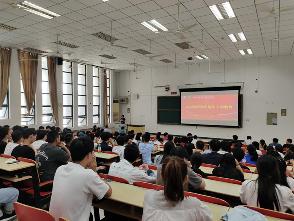 9月10日上午,威尼斯432888cam在南湖校区博2楼C101举办学院2023级研究生新生入学教育宣讲会。学院科研副院长王潜心、研究生辅导员杨政军、王奕骅出席宣讲会,2023级研究生新生240多人参加宣讲会。