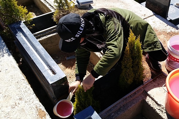 环境17-3班丁敏同学,回到故乡之后,秉持心中对大自然的热爱,开展“种下生命,保护环境”学雷锋志愿活动。用自己的双手把枯萎的树木挖出,替换上新的树苗。为世界带来一抹亮眼的绿色,为环保贡献自己的一份力量。