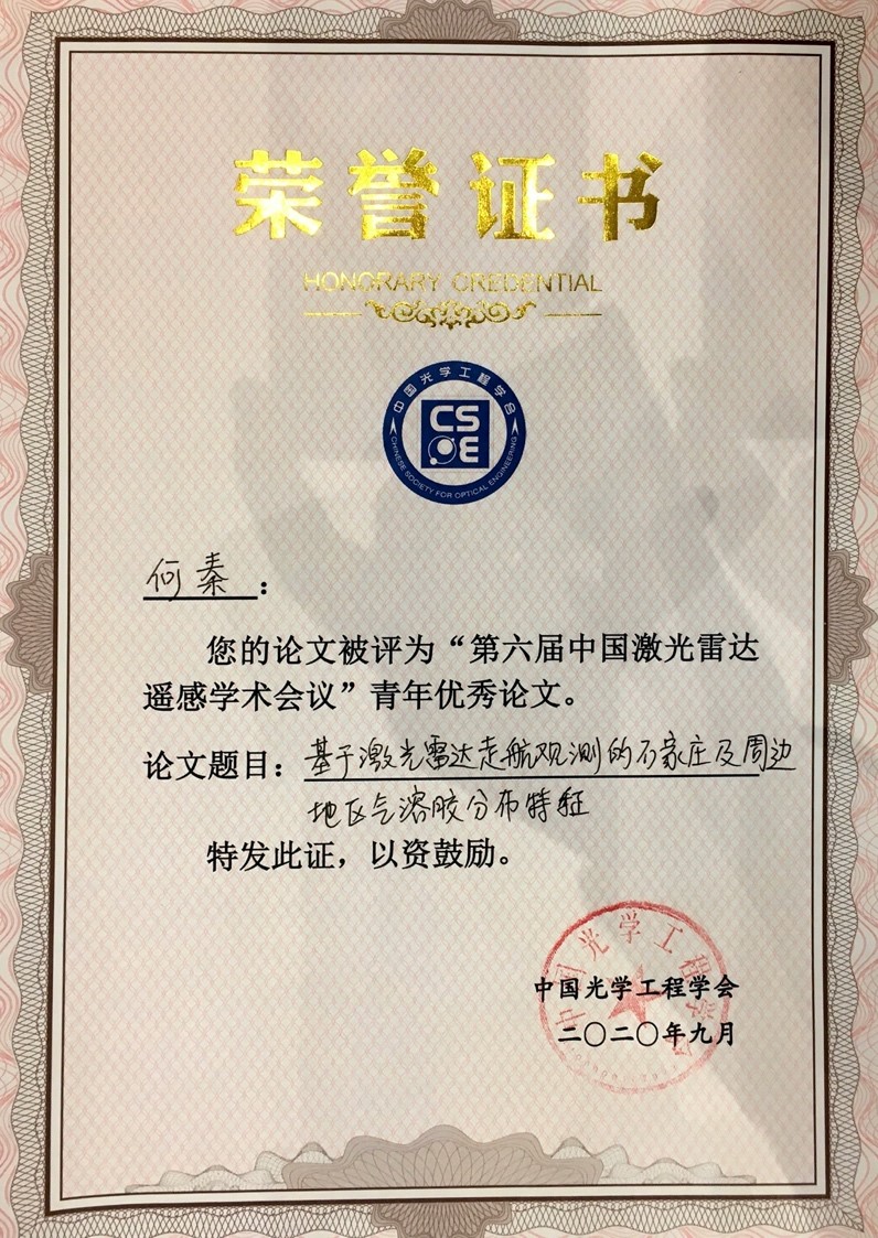 威尼斯官网秦凯教授指导的硕士生何秦参加会议,并在激光雷达信息处理技术和应用专题作了题为“基于激光雷达走航观测的石家庄及周边地区气溶胶分布特征”的报告,所对应的论文同时被评为青年优秀论文。与会期间,研究生听取会议报告,并积极与相关领域的专家学者交流讨论,促进了对激光雷达遥感研究现状与未来发展方向的认识。