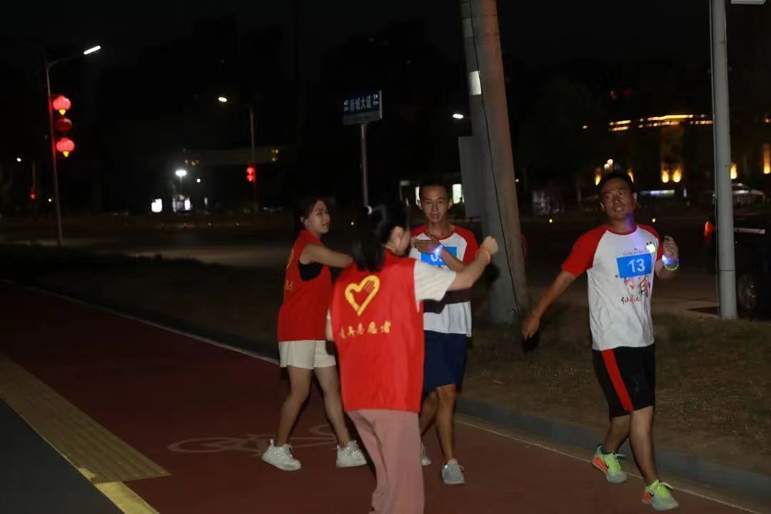 跑步是一种在日常生活中便捷的体育锻炼方法,是有氧运动的主要运动方式,因其方式简单且不需要额外的器材,所以一直为人们所青睐。跑步有许多好处,比如可以改善体质易于减脂,提高机体免疫能力等。但南方的夏天空气闷热,只有在黄昏之后气温才会下降一些。在综合实际天气情况的考量下,为激发市民们的锻炼热情,仙桃市团委举办了“荧光溢彩·青春同行”荧光夜跑活动,威尼斯432888cam测绘工程专业2020级2班梁玉清同学担任了此次活动的志愿者,其主要工作是为一号补给站经过的参与人员发放补给品。
