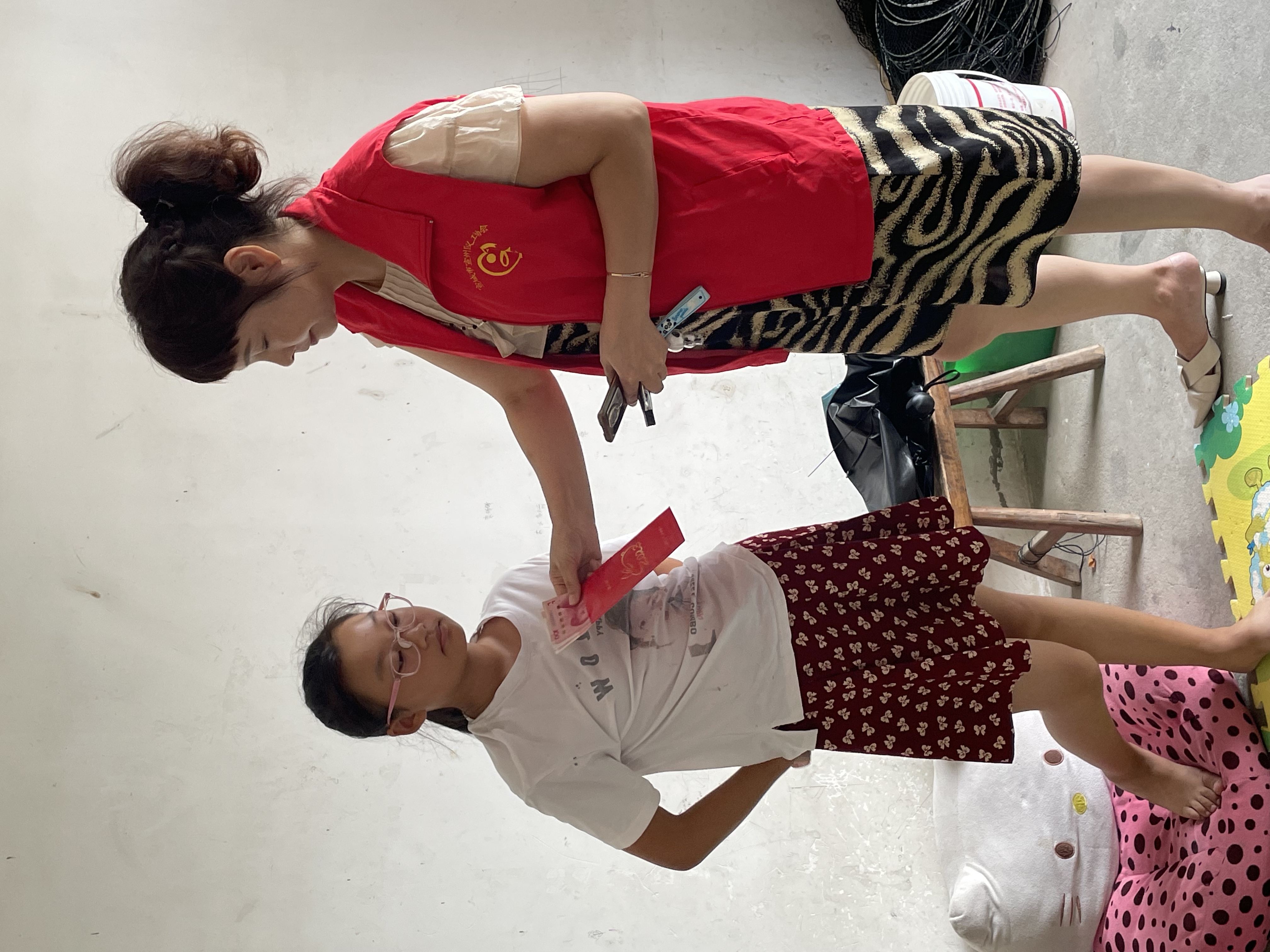 资助人与学子母亲交流生活情况