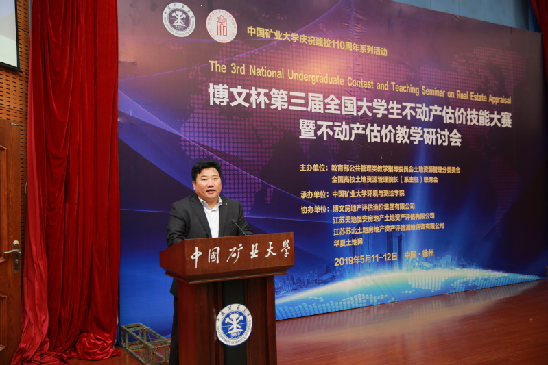 周国庆副校长代表学校致辞并祝贺大赛顺利开幕,向与会的专家学者、参赛选手表示诚挚的欢迎,简要介绍了学校办学情况及学院学科发展历程。他指出,不动产估价是土地资源管理学科的重要研究领域之一,具有较强的理论性和实用性。本届大赛暨研讨会以“城乡融合发展战略下的不动产估价实践与创新”为主题具有重要意义,不仅适应了新时代城乡融合发展战略部署的新特点,有助于大学生开阔视野、拓展思路,提升实践技能和创新能力,更有助于满足新时代经济社会发展对估价人才的需求,开启新时代不动产估价实践的新征程。本次活动的开展,为我校土地资源管理专业的教学改革与建设、学生实践技能培养提供了借鉴和启发,希望各位领导、各位专家能够一如既往的对矿大的土地资源管理专业的建设给予指导和支持,提出宝贵意见和建议。