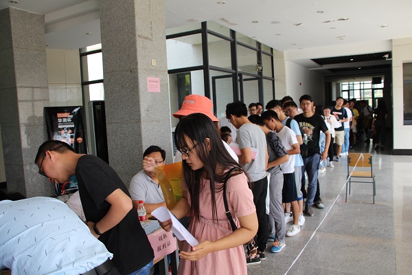 正午11点整,全部工作准备就绪,各类材料分工标注醒目,工作人员在环测学院一楼大厅认真投入工作并充满着积极状态。环测学院18届毕业生按照指示牌排队依次领取离校通知单、注销学生证、打印党员/团员转组织关系证明、领取毕业证、学位证、上交离校通知单,现场秩序井然。工作人员秉着积极热情的服务态度,细致入微地为每一位毕业生办理相关手续,并耐心地对一些特殊情况进行协调,使工作井然有序的进行着,这为每一位毕业生提供了方便,受到广大毕业生的一致好评,工作现场气氛十分融洽。环测学院一直高度重视毕业生离校手续办理工作,并多次强调落实好毕业生离校工作并排查出可能出现的问题和困难,以确保毕业生顺利离校。