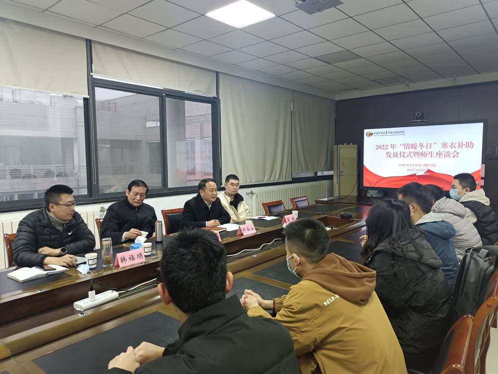 12月9日下午4时,威尼斯官网于学院楼A506开展 “情暖冬日”寒衣补助发放仪式暨师生座谈会。学院执行院长郑南山、关工委常务副主任邱慎耕、院党委副书记韩福顺、及2022级9位同学代表参加了此次活动。本次活动由2022级辅导员蔡臻主持。